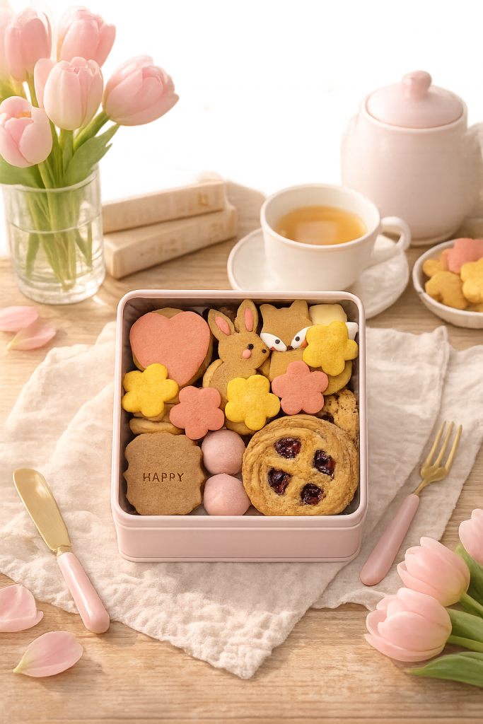 ひと足先の春を連れてくる限定クッキー缶 お正月のクッキー缶から、Pre-Spring(春待ち)仕様になりました。うさぎときつねがそっと寄り添い、ガーランドをイメージしたお花を並べて。ピンクや黄色のやさしい色合いが、テーブルの上にひと足先の春を連れてき...
