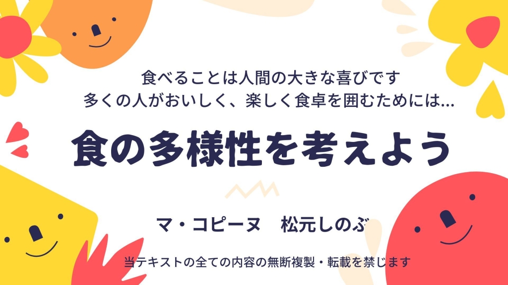 - 食の違いを理解する“はじめの一歩”